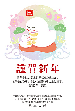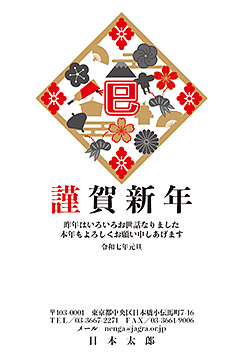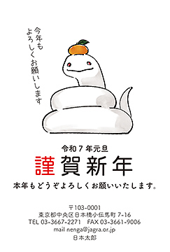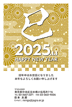 縁起が良いといわれている黄金のヘビで漢字の「巳」を表現しています。年齢を問わず使用してもらえるシンプルな年賀状を目指しました。